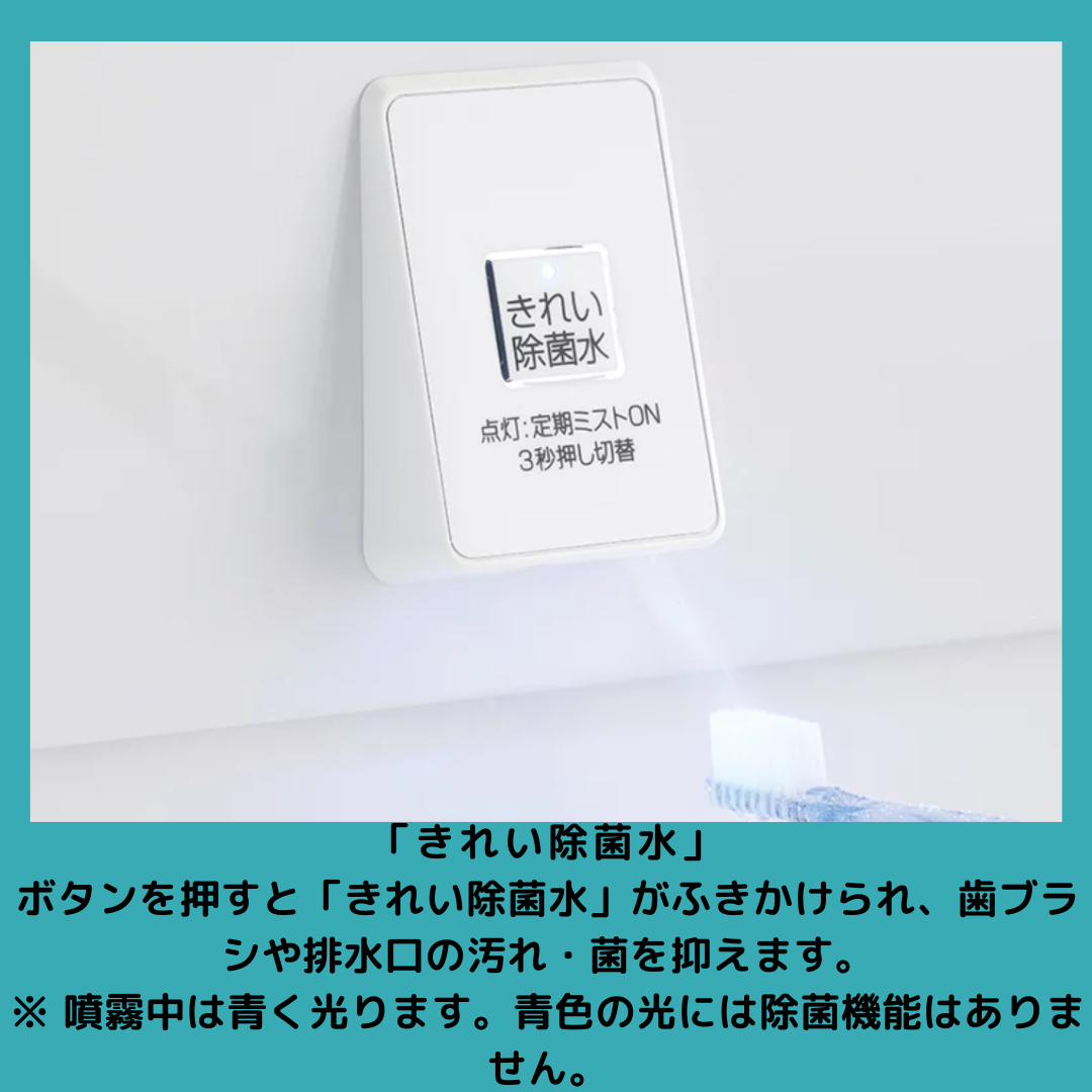 H様は、使い勝手、収納の良い三面鏡を選び、1番こだわったのが、きれい除菌水⟡、きれい除菌水は、吹きかける事によって歯ブラシの黄ばみ、除菌をしてくれる清潔感を重視した、オプションです😊