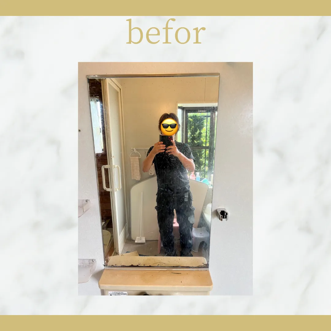 浴室の鏡の汚れが目立つとのことで、交換依頼がありました。