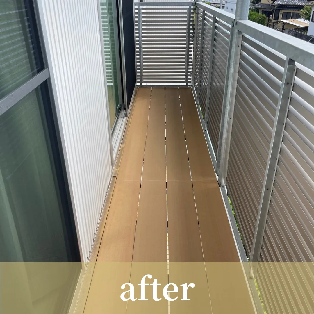 それに伴い、床も木板でしたのでリクシルのレストステージ(人工木)を取り付けいたしました✩*ˊ