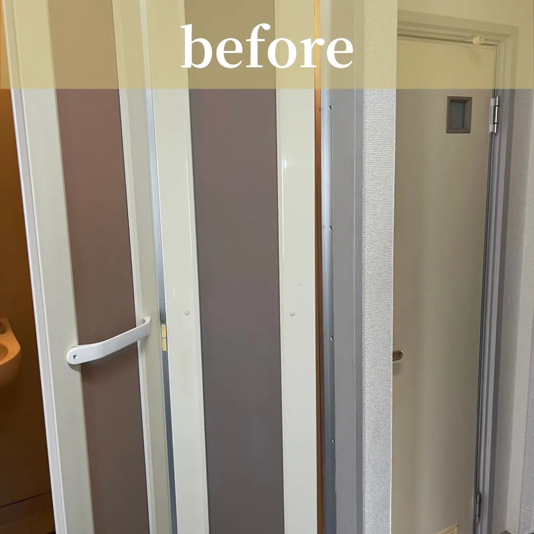 今回、マンションのオーナー様から浴室入り口の折れ戸が壊れ、開閉不良との事で現場調査したところ、昔の廃盤になっているユニットバスだったため提案としては、新しいユニットバスの取り付けか、折れ戸のカバー工法を提案しました。予算は抑えたいとの事で、こちらを採用⭐️