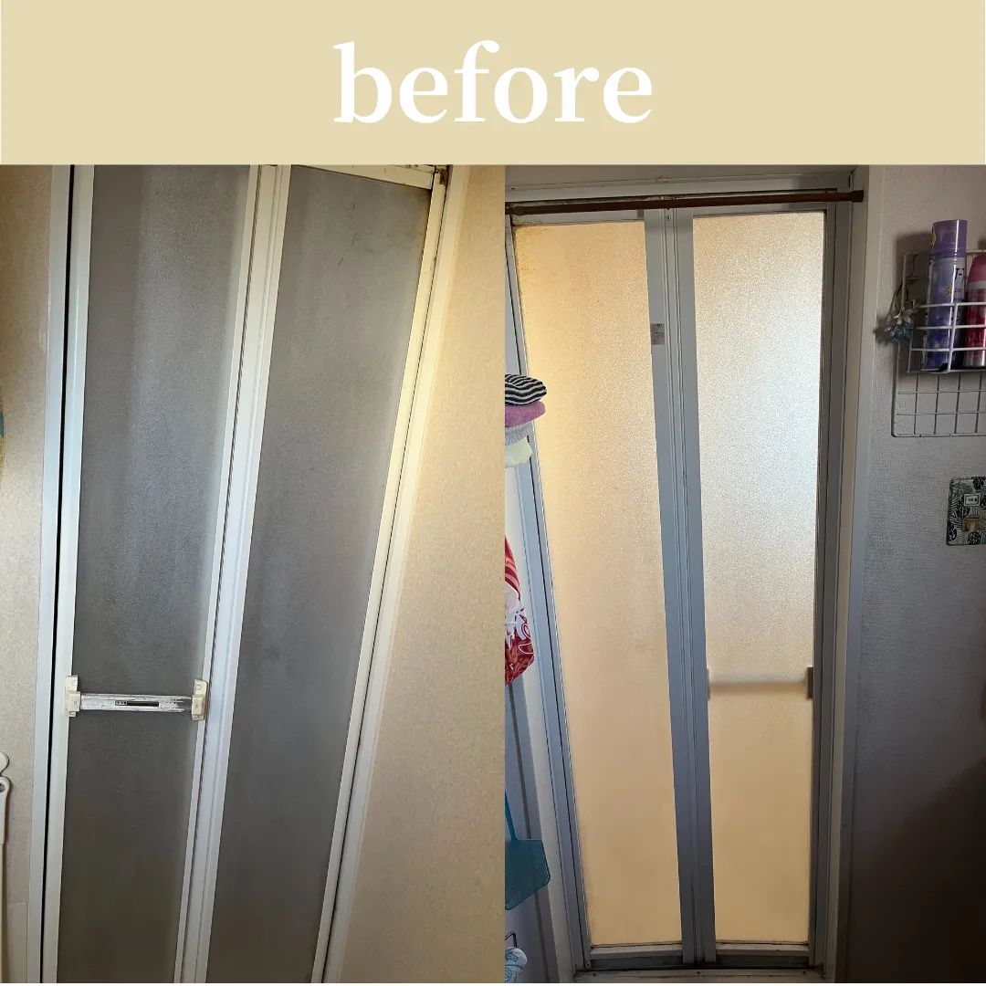 ドアは不具合はないのですが、もう古くなったため、折れ戸から開き戸に交換したいとの事でした。