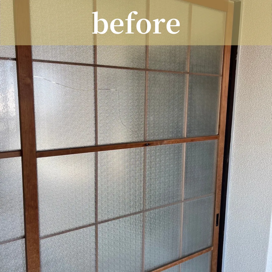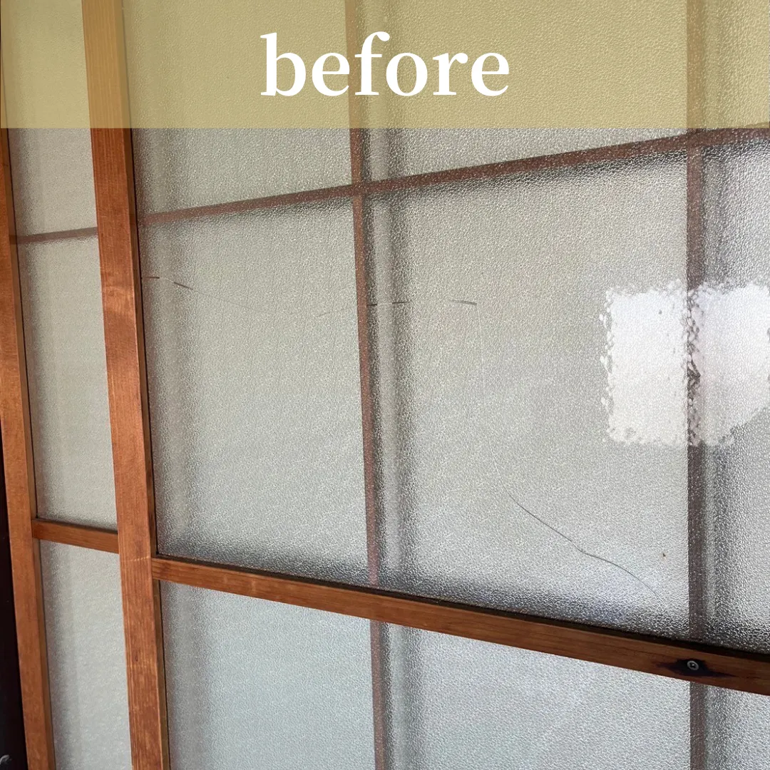 内部建具のガラス、2mmの梨地ガラスの交換。