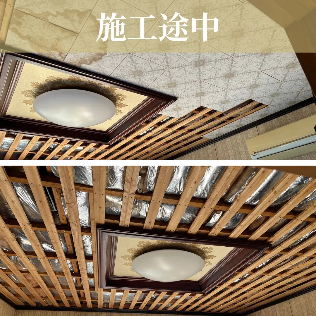 今回、屋根から雨漏りがあり、屋根の板金カバー工事と一緒に雨漏りしていた天井材の張替えを行いました🛠️