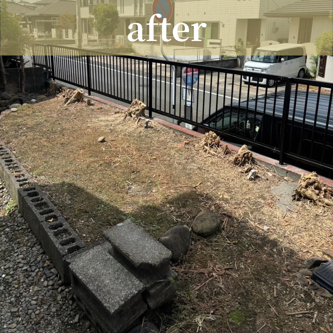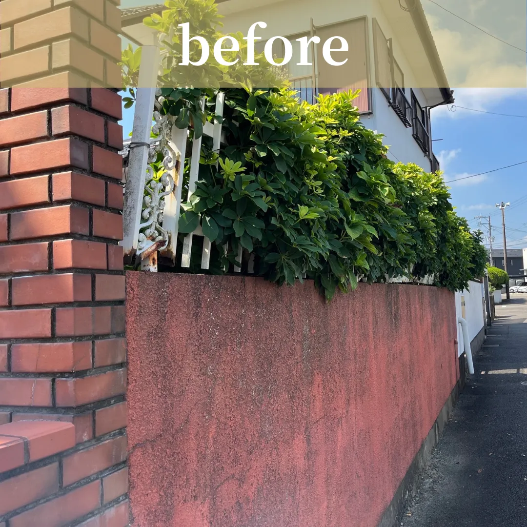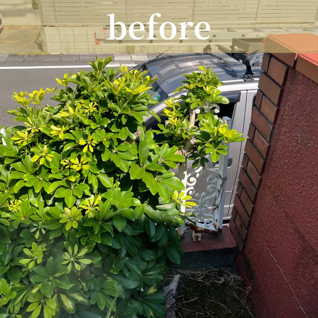 植木が、既存のフェンスに巻きついており、それにより柱が折れていました。植木の伐採及び、フェンスの新規交換を致しました🛠️