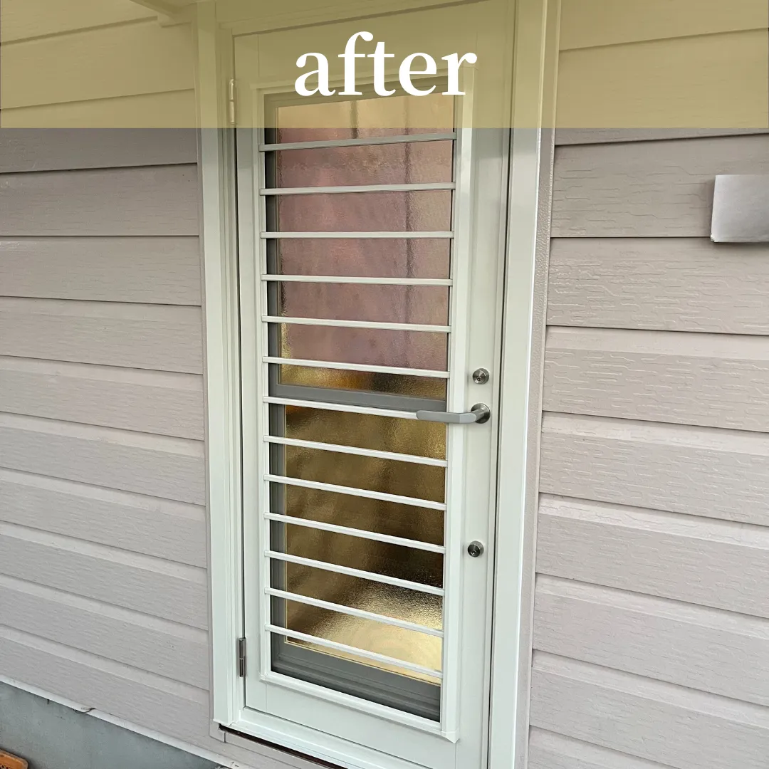 お客様のご要望は、網戸があり通風できるものがご希望との事で、ドアを閉めたままガラスが上下にスライドする商品を選んでいただきました。